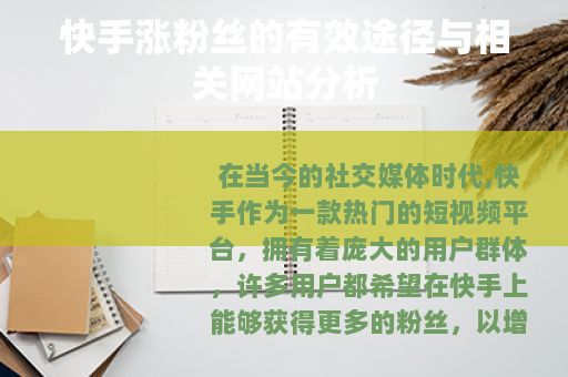 在当今的社交媒体时代,快手作为一款热门的短视频平台,拥有着庞大的用户群体,许多用户都希望在快手上能够获得更多的粉丝,以增加自己的影响力和作品的传播度,各种声称可以帮助快手涨粉丝的网站应运而生。
