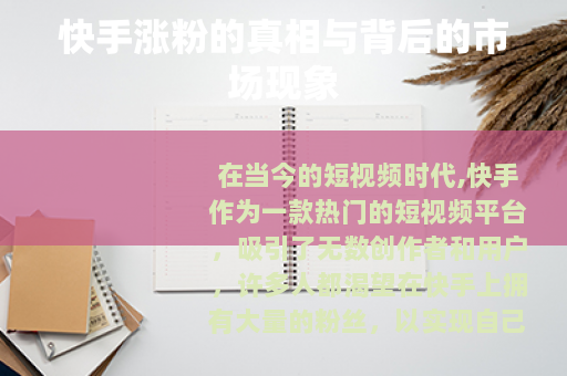 在当今的短视频时代,快手作为一款热门的短视频平台,吸引了无数创作者和用户,许多人都渴望在快手上拥有大量的粉丝,以实现自己的创作价值和商业目标,而在这个过程中,市场上出现了一种所谓“快手涨粉一元1000”的现象,引发了广泛的关注和讨论。