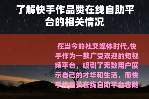 在当今的社交媒体时代,快手作为一款广受欢迎的短视频平台,吸引了无数用户展示自己的才华和生活,而快手作品赞在线自助平台也随之应运而生,为许多希望提升自己作品热度的用户提供了一种途径。