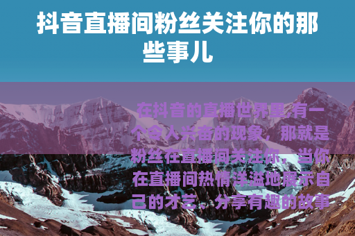 在抖音的直播世界里,有一个令人兴奋的现象,那就是粉丝在直播间关注你,当你在直播间热情洋溢地展示自己的才艺、分享有趣的故事或者进行专业的知识讲解时,看到那不断跳动的关注提示,无疑是一种极大的鼓舞。