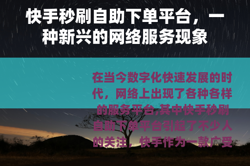 在当今数字化快速发展的时代,网络上出现了各种各样的服务平台,其中快手秒刷自助下单平台引起了不少人的关注。