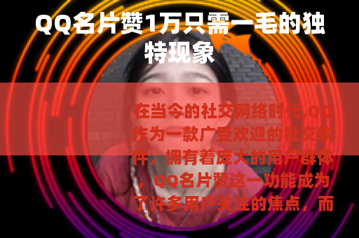 QQ名片赞1万只需一毛的现象是社交网络发展过程中的一个独特产物,它既带来了机遇,也带来了挑战,值得我们进一步关注和思考,以便更好地适应和引导社交网络的健康发展。