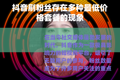 抖音刷粉丝最低价格的套餐在市场上确实存在,但其背后所涉及的一系列问题也值得我们深入思考,用户在追求抖音账号发展的过程中,应该以合法合规、注重内容质量和用户体验为原则,通过自身的努力和创新,在抖音平台上实现真正的价值和影响力。