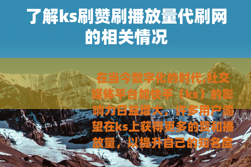 在当今数字化的时代,社交媒体平台如快手(ks)的影响力日益增大,许多用户渴望在ks上获得更多的赞和播放量,以提升自己的知名度和影响力,在这样的背景下,ks刷赞刷播放量代刷网应运而生。