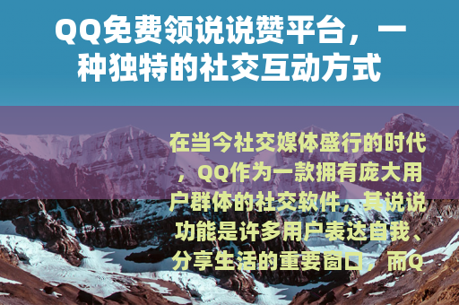 在当今社交媒体盛行的时代,QQ作为一款拥有庞大用户群体的社交软件,其说说功能是许多用户表达自我、分享生活的重要窗口,而QQ免费领说说赞平台的出现,为用户们提供了一种新的互动体验。