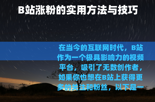 在B站涨粉需要付出努力和时间,不断优化自己的内容和运营策略,才能吸引到越来越多的粉丝,在这个充满活力的平台上实现自己的创作价值。