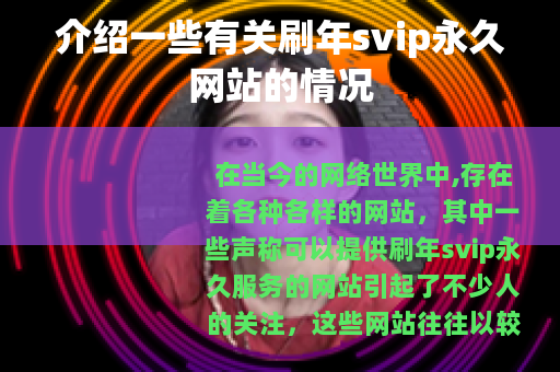 在当今的网络世界中,存在着各种各样的网站,其中一些声称可以提供刷年svip永久服务的网站引起了不少人的关注,这些网站往往以较低的价格或看似诱人的条件吸引用户去尝试获取某些平台的高级会员服务,如刷年svip永久的功能。