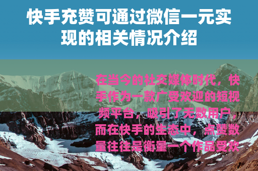 在当今的社交媒体时代,快手作为一款广受欢迎的短视频平台,吸引了无数用户,而在快手的生态中,点赞数量往往是衡量一个作品受欢迎程度的重要指标之一,出现了一种现象,那就是快手充赞服务,其中有一种方式是通过微信支付一元钱来获取一定数量的点赞。
