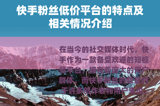 在当今的社交媒体时代,快手作为一款备受欢迎的短视频平台,拥有着庞大的用户群体,而快手粉丝的数量对于许多创作者和用户来说,具有重要的意义,在这样的背景下,快手粉丝低价平台应运而生。