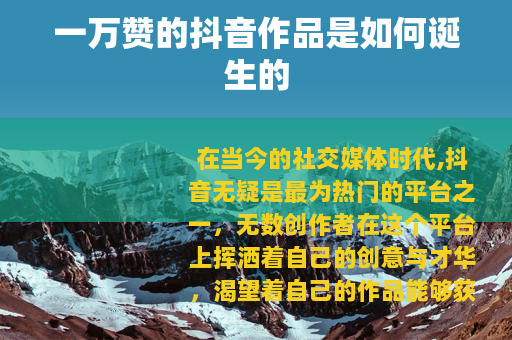 在当今的社交媒体时代,抖音无疑是最为热门的平台之一,无数创作者在这个平台上挥洒着自己的创意与才华,渴望着自己的作品能够获得更多的关注与点赞,而一万赞,对于许多抖音创作者来说,是一个具有里程碑意义的数字,它代表着作品的受欢迎程度和影响力。