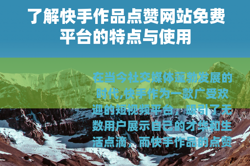 在当今社交媒体蓬勃发展的时代,快手作为一款广受欢迎的短视频平台,吸引了无数用户展示自己的才华和生活点滴,而快手作品的点赞数量往往成为衡量作品受欢迎程度的一个重要指标,快手作品点赞网站免费平台应运而生,为众多快手用户提供了一种增加作品点赞量的途径。