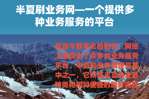 在当今数字化的时代,网络上涌现出了众多的业务服务平台,半夏刷业务网便是其中之一,它以其丰富的业务种类和相对便捷的服务流程,吸引了不少用户的关注。