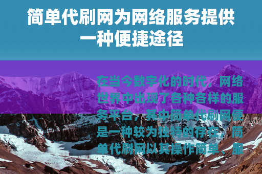 在当今数字化的时代,网络世界中出现了各种各样的服务平台,其中简单代刷网便是一种较为独特的存在,简单代刷网以其操作简单、服务多样的特点,在一定程度上满足了部分用户的特定需求。