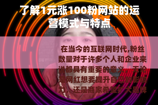 在当今的互联网时代,粉丝数量对于许多个人和企业来说都具有重要的意义,无论是网红想要提升自己的影响力,还是商家希望扩大品牌的知名度,拥有大量的粉丝往往是实现目标的关键之一,而在众多的涨粉途径中,1元涨100粉的网站引起了不少人的关注。