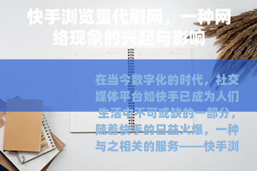 在当今数字化的时代,社交媒体平台如快手已成为人们生活中不可或缺的一部分,随着快手的日益火爆,一种与之相关的服务——快手浏览量代刷网也悄然兴起,它在网络世界中引发了诸多关注和讨论。