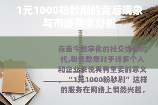 在当今数字化的社交媒体时代,粉丝数量对于许多个人和企业来说具有重要的意义。“1元1000粉秒刷”这样的服务在网络上悄然兴起,引发了广泛的关注和讨论。