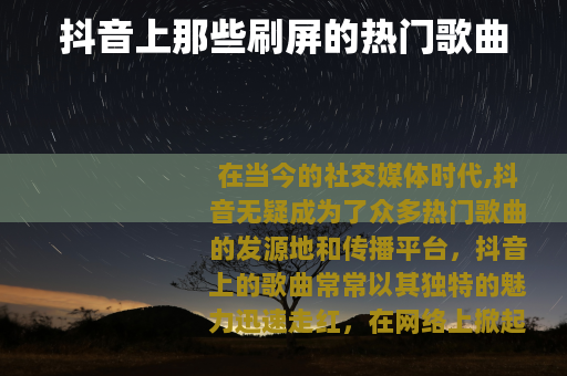 在当今的社交媒体时代,抖音无疑成为了众多热门歌曲的发源地和传播平台,抖音上的歌曲常常以其独特的魅力迅速走红,在网络上掀起一波又一波的热潮,成为人们口中哼唱、手机里循环播放的热门旋律。
