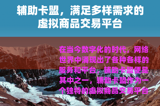 在当今数字化的时代,网络世界中涌现出了各种各样的服务和平台,辅助卡盟便是其中之一,辅助卡盟作为一个独特的虚拟商品交易平台,为众多用户提供了丰富的资源和便利的服务。