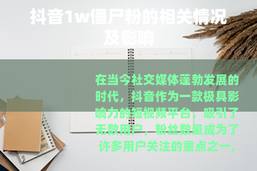 在当今社交媒体蓬勃发展的时代,抖音作为一款极具影响力的短视频平台,吸引了无数用户,粉丝数量成为了许多用户关注的重点之一,而抖音1w僵尸粉的现象也随之出现并引发了诸多讨论。