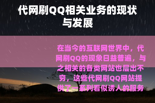 在当今的互联网世界中,代网刷QQ的现象日益普遍,与之相关的各类网站也层出不穷,这些代网刷QQ网站提供了一系列看似诱人的服务,吸引着众多用户的关注。