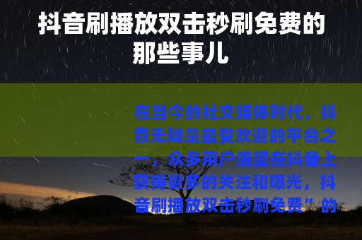 对于许多抖音创作者来说,视频的播放量和双击量是衡量其作品受欢迎程度的重要指标,高播放量和双击量不仅能让他们的作品更容易被推荐给更多用户,还能在一定程度上提升他们在抖音平台上的影响力和知名度,而“抖音刷播放双击秒刷免费”服务的出现,似乎为他们提供了一条快速提升数据的捷径。