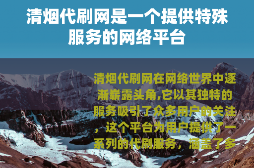 清烟代刷网在网络世界中逐渐崭露头角,它以其独特的服务吸引了众多用户的关注,这个平台为用户提供了一系列的代刷服务,涵盖了多个领域,满足了不同用户的需求。