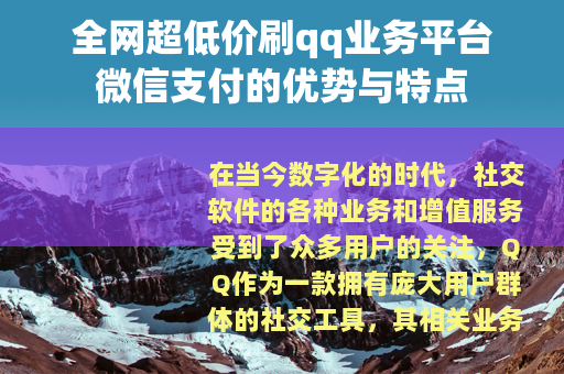 在当今数字化的时代,社交软件的各种业务和增值服务受到了众多用户的关注,QQ作为一款拥有庞大用户群体的社交工具,其相关业务的需求也一直居高不下,而全网超低价刷QQ业务平台微信支付的出现,为广大用户提供了一种新的选择和便利。
