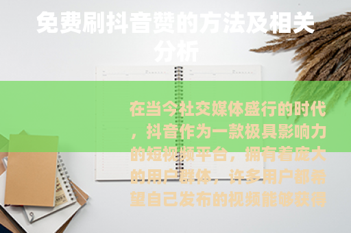 在当今社交媒体盛行的时代,抖音作为一款极具影响力的短视频平台,拥有着庞大的用户群体,许多用户都希望自己发布的视频能够获得更多的赞,以增加曝光度和人气,而免费刷抖音赞也成为了一些人关注的话题。