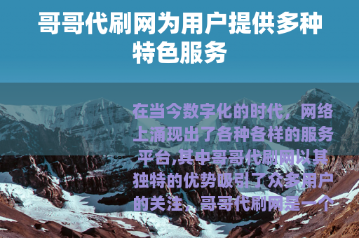 在当今数字化的时代,网络上涌现出了各种各样的服务平台,其中哥哥代刷网以其独特的优势吸引了众多用户的关注。