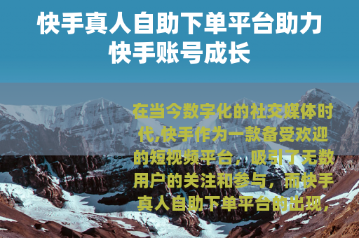 在当今数字化的社交媒体时代,快手作为一款备受欢迎的短视频平台,吸引了无数用户的关注和参与,而快手真人自助下单平台的出现,为许多快手用户提供了一种新的发展途径。