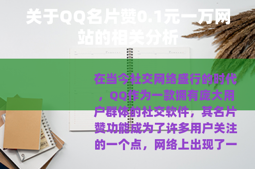 在当今社交网络盛行的时代,QQ作为一款拥有庞大用户群体的社交软件,其名片赞功能成为了许多用户关注的一个点,网络上出现了一些声称可以以0.1元一万的价格提供QQ名片赞的网站,这一现象引发了不少人的关注和讨论。