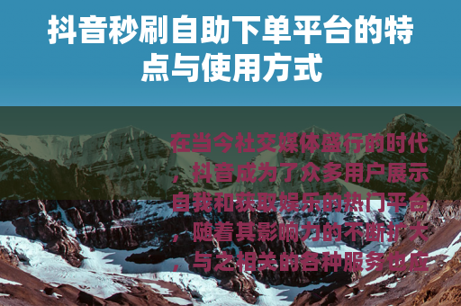 在当今社交媒体盛行的时代,抖音成为了众多用户展示自我和获取娱乐的热门平台,随着其影响力的不断扩大,与之相关的各种服务也应运而生,其中抖音秒刷自助下单平台引起了不少人的关注。