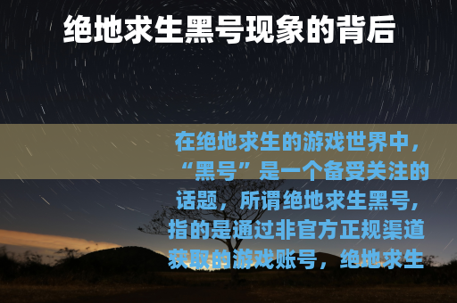 在绝地求生的游戏世界中,“黑号”是一个备受关注的话题,所谓绝地求生黑号,指的是通过非官方正规渠道获取的游戏账号。