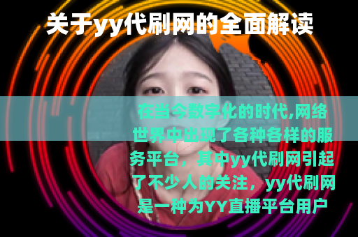 在当今数字化的时代,网络世界中出现了各种各样的服务平台,其中yy代刷网引起了不少人的关注,yy代刷网是一种为YY直播平台用户提供虚拟数据刷量服务的网络平台,它在一定程度上满足了部分用户对于提升直播数据的需求。
