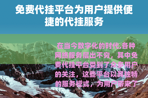 在当今数字化的时代,各种网络服务层出不穷,其中免费代挂平台受到了众多用户的关注,这些平台以其独特的服务模式,为用户带来了诸多便利,在网络世界中占据了一席之地。