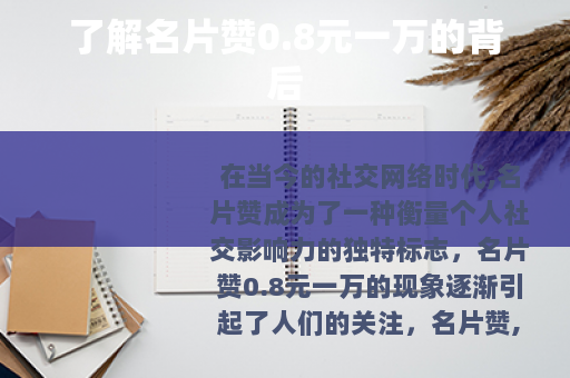 在当今的社交网络时代,名片赞成为了一种衡量个人社交影响力的独特标志,名片赞0.8元一万的现象逐渐引起了人们的关注。