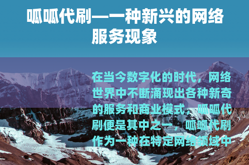 在当今数字化的时代,网络世界中不断涌现出各种新奇的服务和商业模式,呱呱代刷便是其中之一,呱呱代刷作为一种在特定网络领域中逐渐兴起的服务,正受到越来越多人的关注。