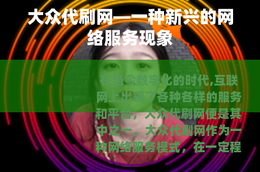 在当今数字化的时代,互联网上出现了各种各样的服务和平台,大众代刷网便是其中之一,大众代刷网作为一种网络服务模式,在一定程度上满足了部分用户的特定需求。