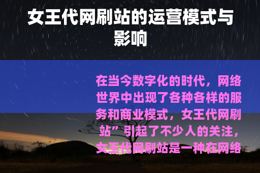 在当今数字化的时代,网络世界中出现了各种各样的服务和商业模式,女王代网刷站”引起了不少人的关注。