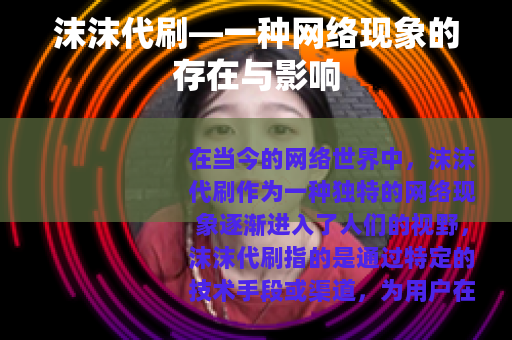 在当今的网络世界中,沫沫代刷作为一种独特的网络现象逐渐进入了人们的视野,沫沫代刷指的是通过特定的技术手段或渠道,为用户在沫沫平台上提供各种数据的代刷服务,比如点赞数、评论数、粉丝量等等。