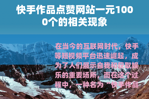 在当今的互联网时代,快手等短视频平台迅速崛起,成为了人们展示自我和获取娱乐的重要场所,而在这个过程中,一种名为“快手作品点赞网站一元1000个”的现象也悄然出现,引发了众多用户的关注。