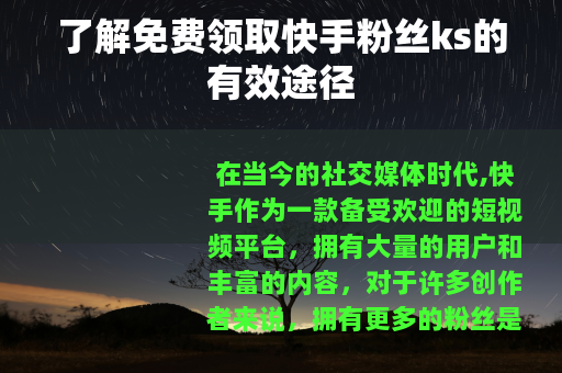 在当今的社交媒体时代,快手作为一款备受欢迎的短视频平台,拥有大量的用户和丰富的内容,对于许多创作者来说,拥有更多的粉丝是他们不断追求的目标,因为粉丝数量不仅代表着人气,还可能带来更多的机会和收益,而“免费领取快手粉丝ks”这个话题也因此备受关注。
