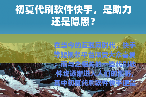 在当今的互联网时代,快手等短视频平台深受大众喜爱,而与之相关的一些代刷软件也逐渐进入人们的视野,其中初夏代刷软件快手便是其中之一。