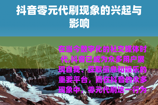 在当今数字化的社交媒体时代,抖音已成为众多用户展现自我、获取信息和娱乐的重要平台,而在抖音的众多现象中,零元代刷这一行为逐渐引起了人们的关注。