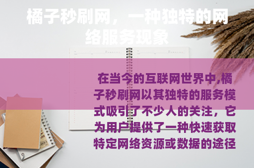 在当今的互联网世界中,橘子秒刷网以其独特的服务模式吸引了不少人的关注,它为用户提供了一种快速获取特定网络资源或数据的途径,在一定程度上满足了部分用户对于效率和便捷性的需求。