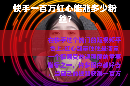 在快手这个热门的短视频平台上,红心数量往往是衡量一个视频受欢迎程度的重要指标之一,许多用户都好奇,当自己的视频获得一百万红心时,究竟能涨多少粉丝呢?
