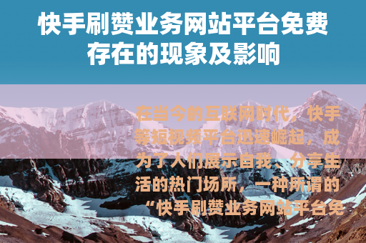 在当今的互联网时代,快手等短视频平台迅速崛起,成为了人们展示自我、分享生活的热门场所,一种所谓的“快手刷赞业务网站平台免费”的现象也悄然出现。