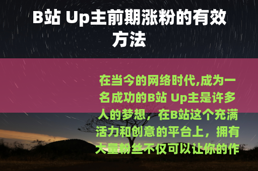 在当今的网络时代,成为一名成功的B站 Up主是许多人的梦想,在B站这个充满活力和创意的平台上,拥有大量粉丝不仅可以让你的作品得到更广泛的传播,还能为你带来各种机会和收益,对于B站的新手Up主来说,在前期如何有效地涨粉呢?以下是一些实用的方法。
