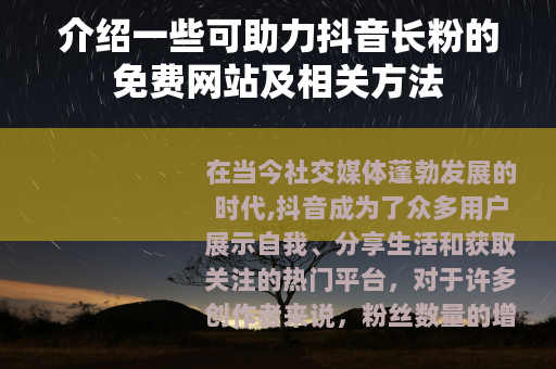 在当今社交媒体蓬勃发展的时代,抖音成为了众多用户展示自我、分享生活和获取关注的热门平台,对于许多创作者来说,粉丝数量的增长是他们不断努力的目标之一,而借助一些合适的免费网站,有可能为抖音长粉带来一定的助力。
