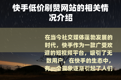 在当今社交媒体蓬勃发展的时代,快手作为一款广受欢迎的短视频平台,吸引了无数用户,在快手的生态中,有一个现象逐渐引起了人们的关注,那就是快手低价刷赞网站。
